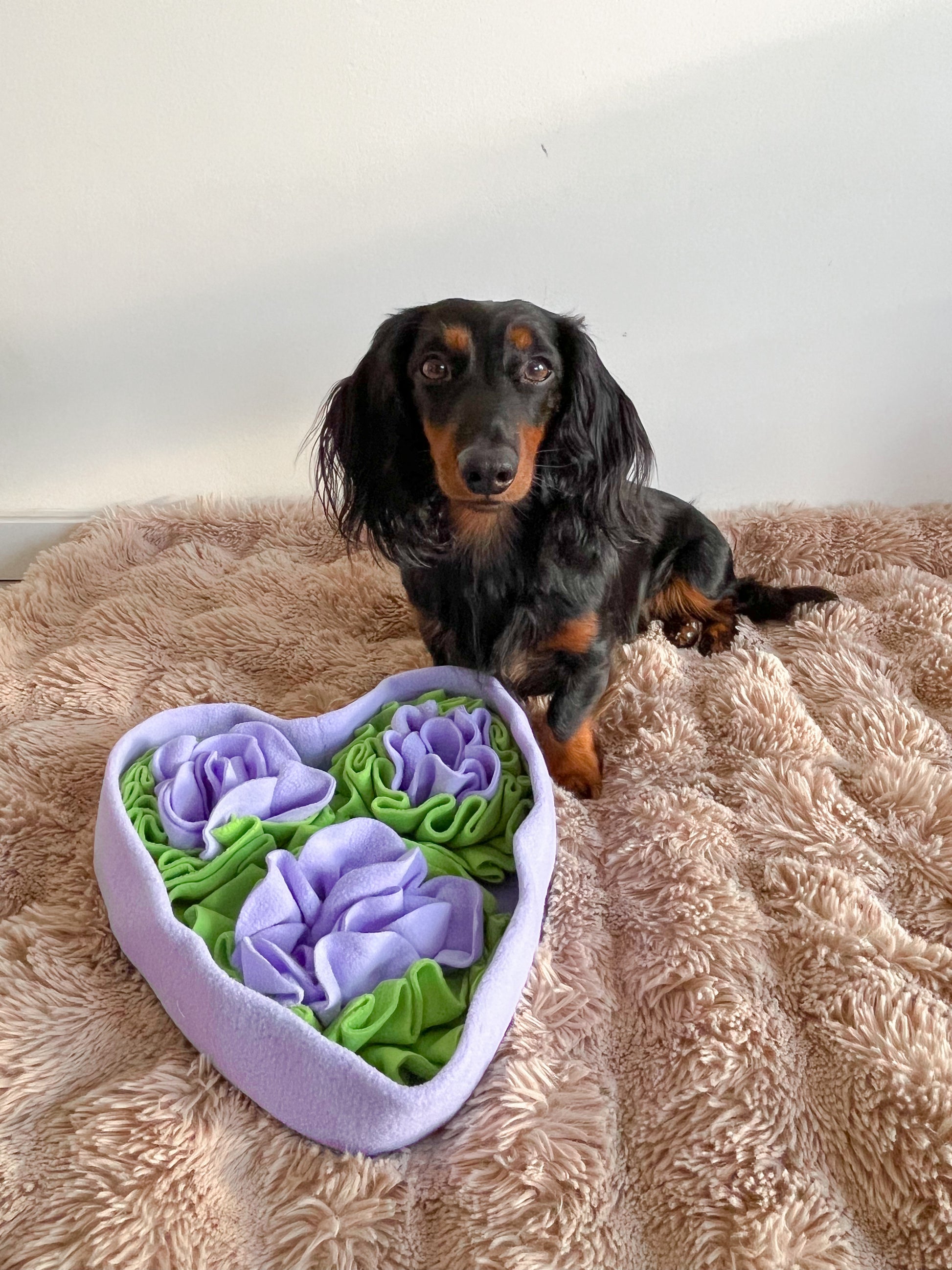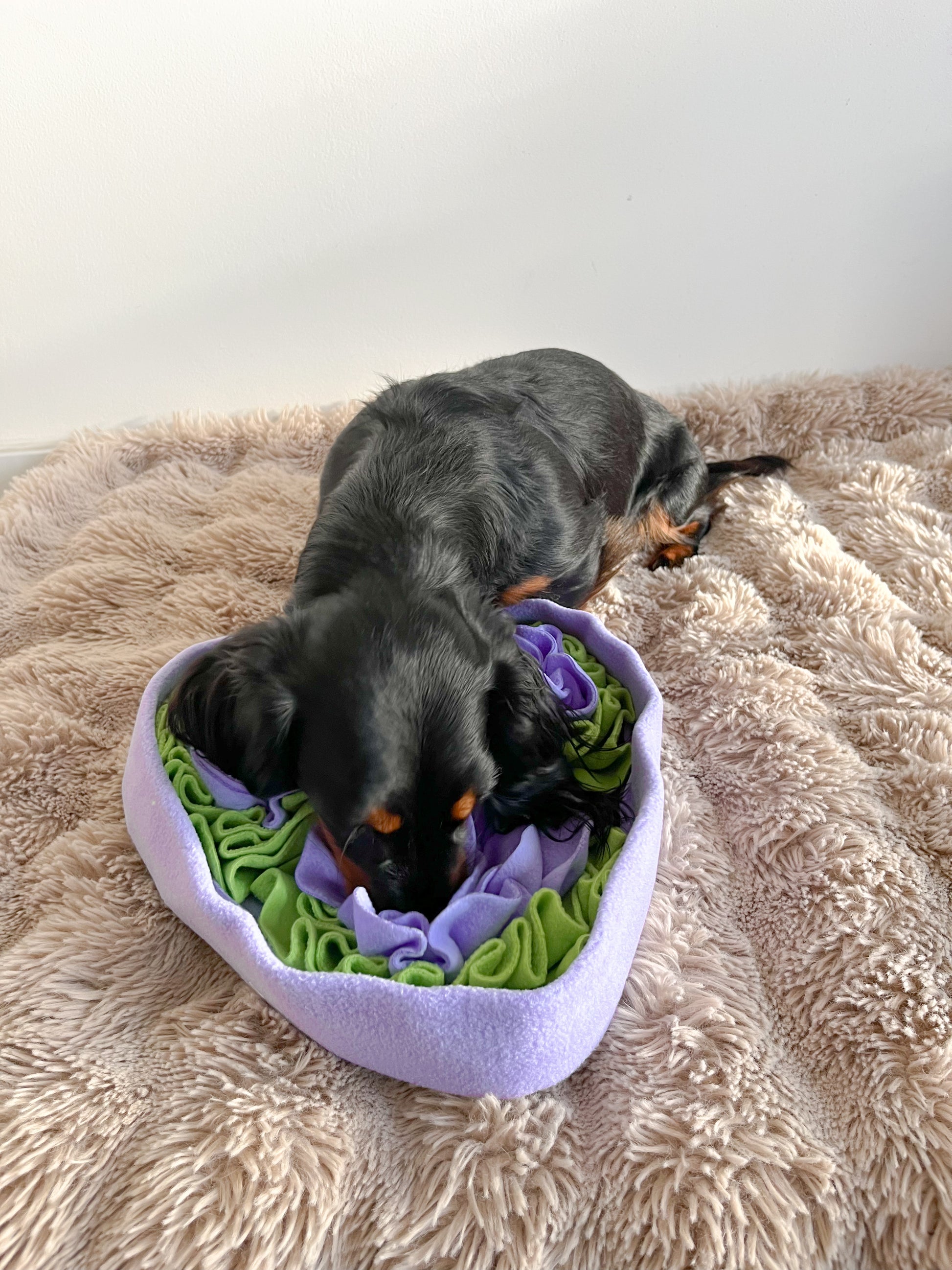 Gemaakt van zacht fleece in frisse groentinten en lavendelpaars, is deze snuffelbak niet alleen mooi om te zien, maar ook perfect om de neus en hersenen van je hond te stimuleren. Verstop wat lekkere snacks tussen de zachte bloemblaadjes en laat je hond snuffelen, zoeken en ontdekken.